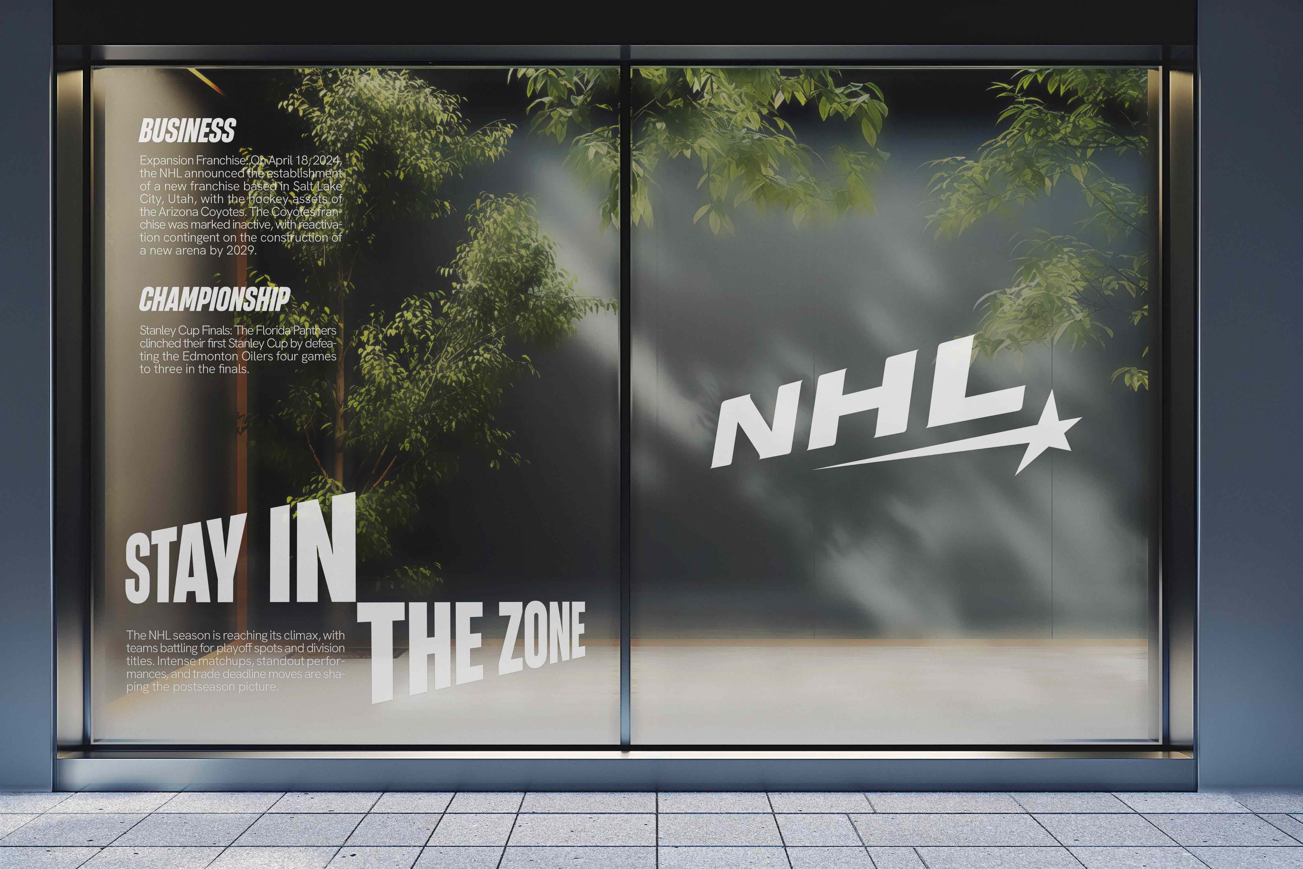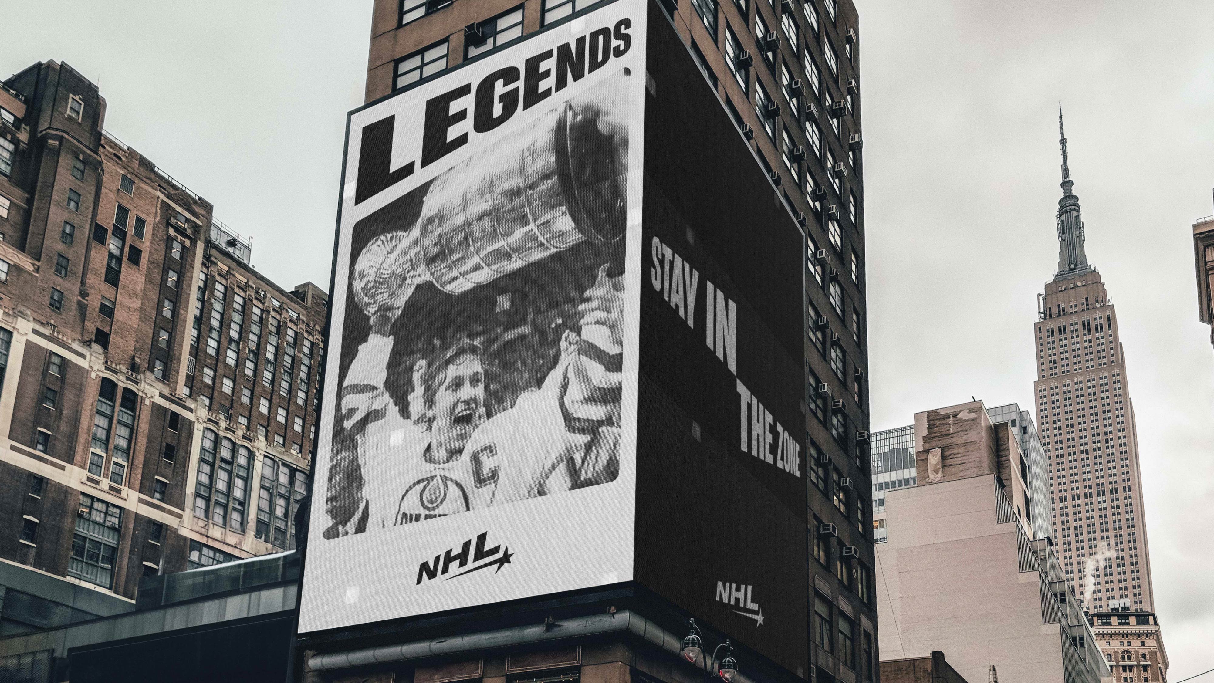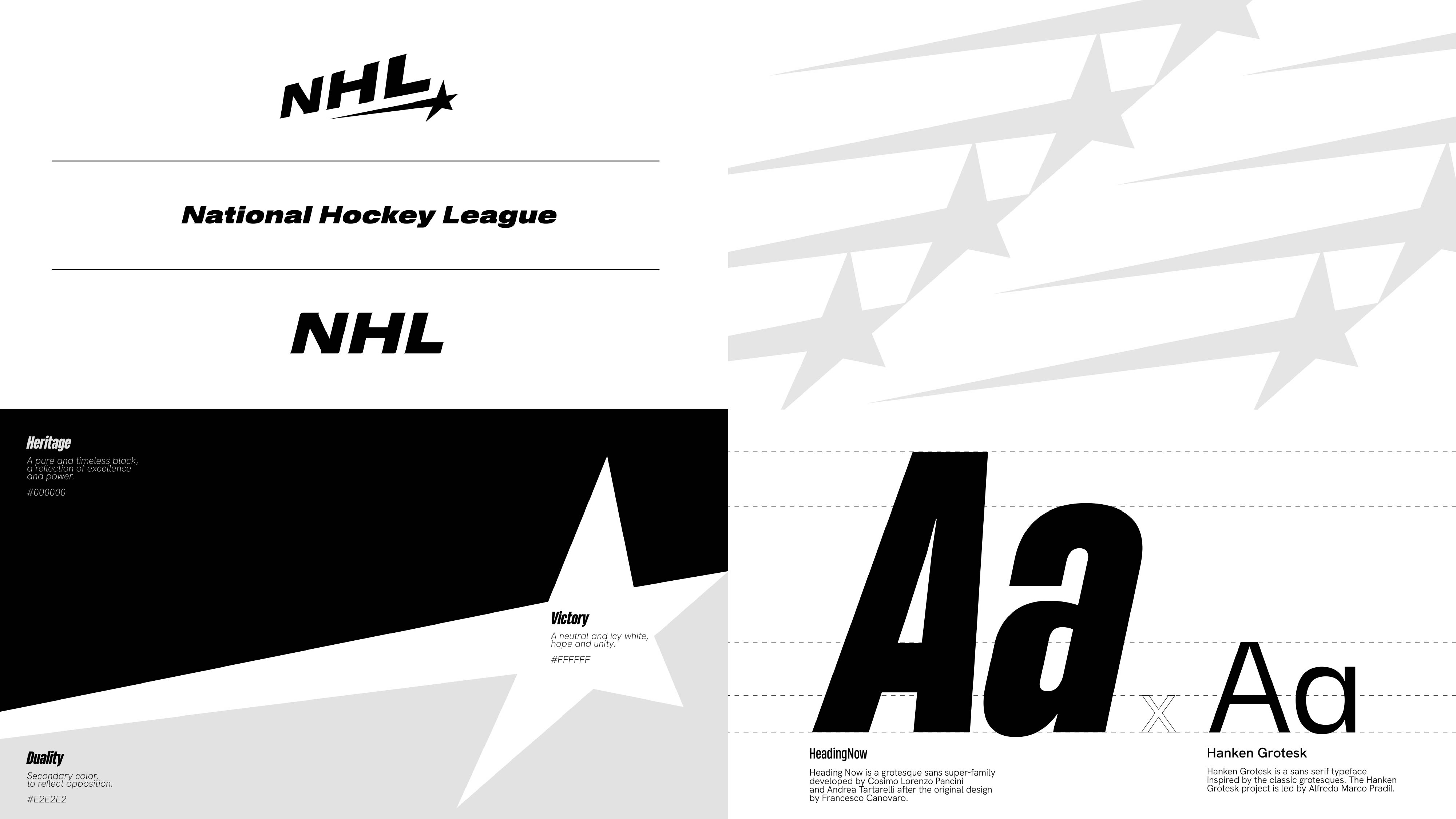 Founded in 1917 in Montreal, Canada, the NHL (National Hockey League) has thrived for years with the same mission: bringing nations together. The league has constantly evolved, showcasing generations of talent, all immortalized in the Hall of Fame. Here, we pay tribute to one of the sport’s most iconic figures, Maurice Richard, nicknamed "The Rocket"—a player of all records. Hockey is a sport of speed, power, and precision. This identity draws inspiration from the puck's trajectory, which varies based on shot intensity and the angle of the stick. Designed as a monochrome concept, it symbolically reflects power, the purity of ice, and impact.The league tells its story with a new tone of voice: "Bring back the heritage, focus on the legendary."